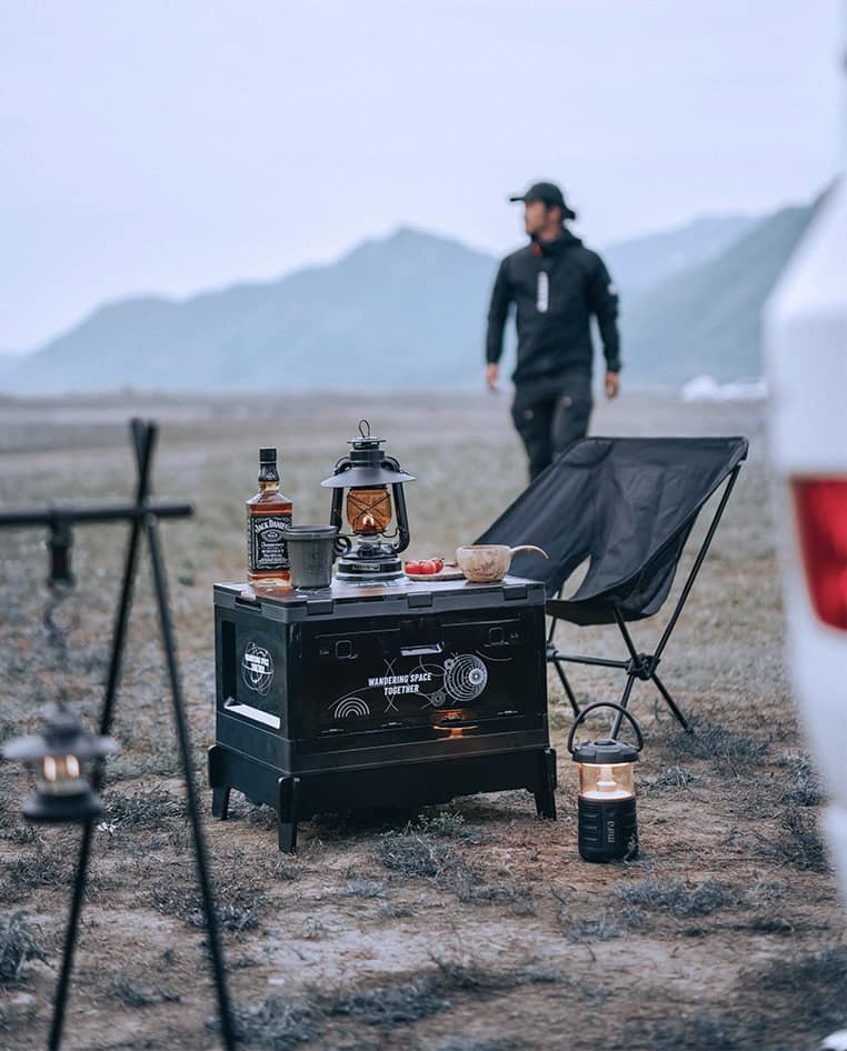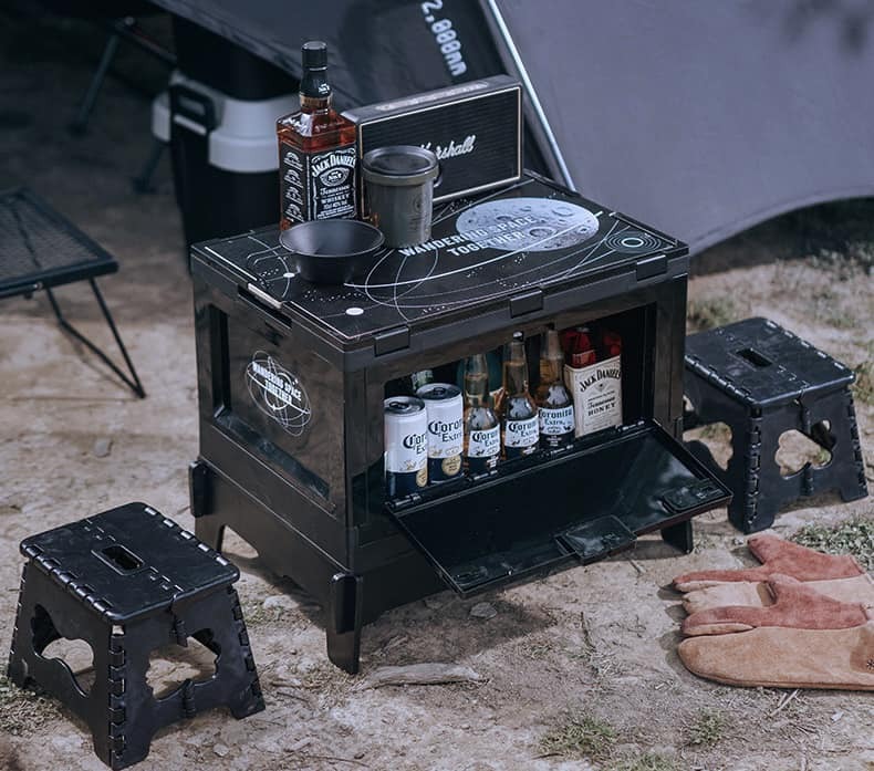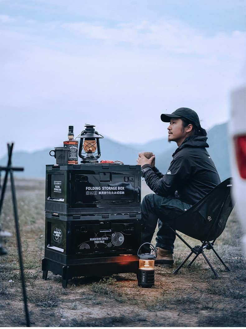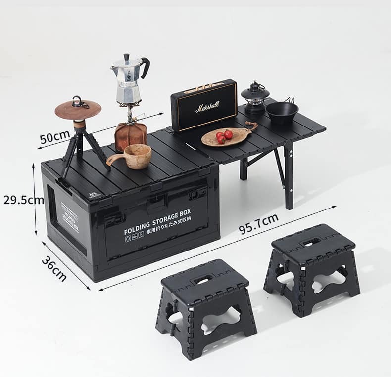 收納箱掛上延伸桌板 瞬間變成蛋捲桌